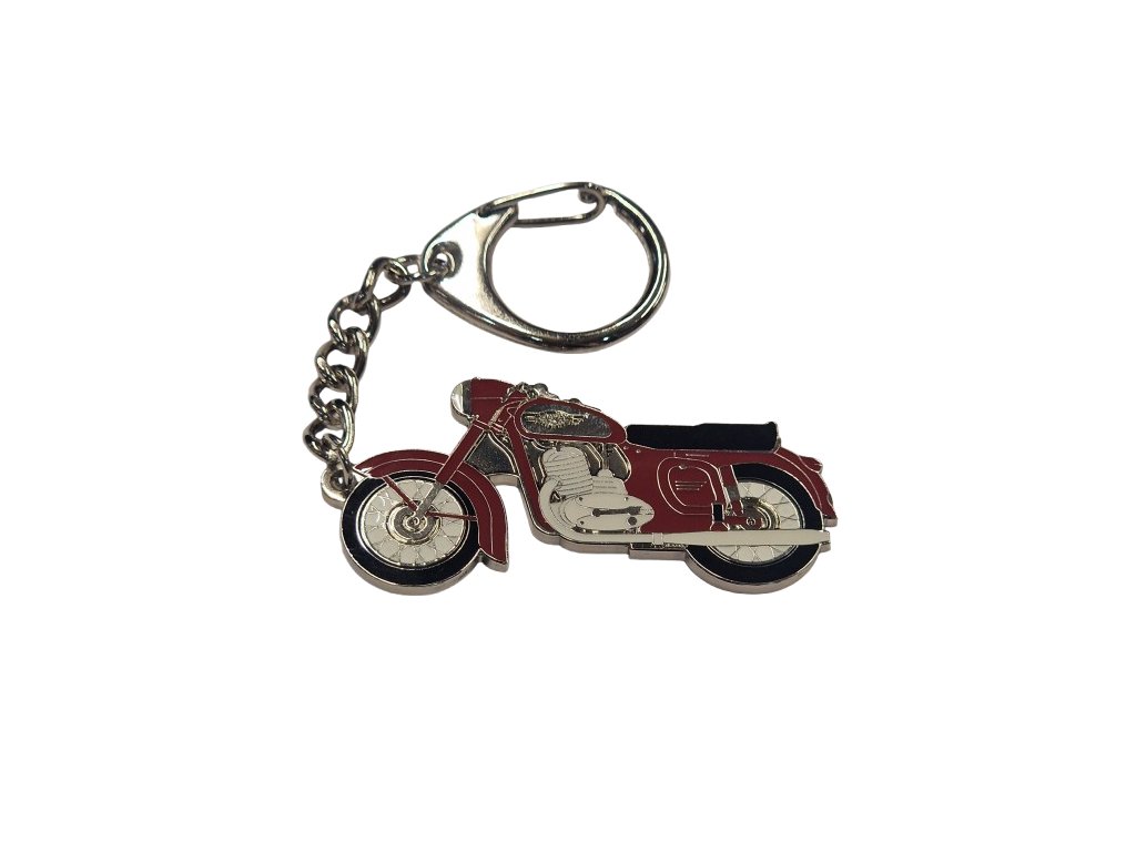 Stylová kovová klíčenka s motivem legendárních motocyklů Jawa potěší každého milovníka české motocyklové klasiky. Je vyrobena z kvalitního kovu Tombak a má povrchovou úpravu v lesklém niklu, díky čemuž působí elegantně a odolně. Každý kus je ručně barven a následně zalit čirou pryskyřicí, která chrání barvy před poškozením a zachovává jejich sytost. Klíčenka je vybavena ocelovým řetízkem s povrchovou úpravou a praktickou karabinkou pro snadné připevnění klíčů.
